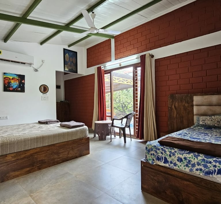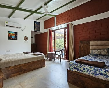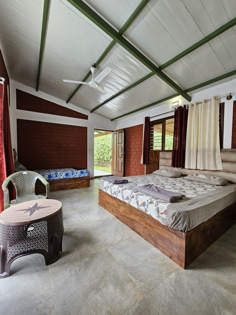 Cottage 2: Features a king-size bed and a single bed, also with an attached bathroom.